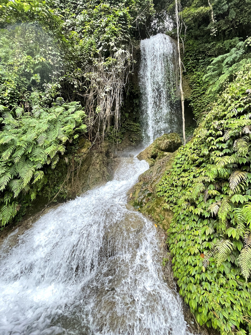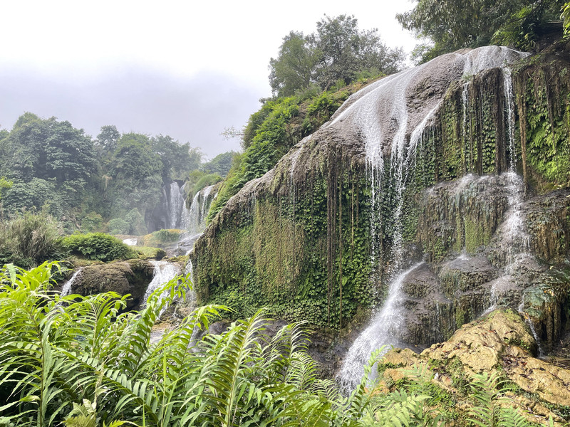 更令人兴奋的是,这会儿瀑布的水势比刚才乘坐竹筏观赏时,大了不止一星半点,场景壮观了许多倍。(上游放水了)