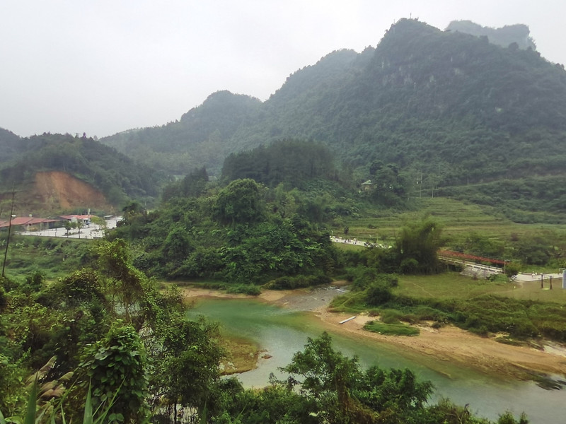 归春河,中越两国界河,公路紧挨着河道而建,两岸风光,或曰两国风光一览无余。