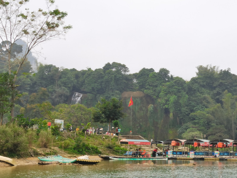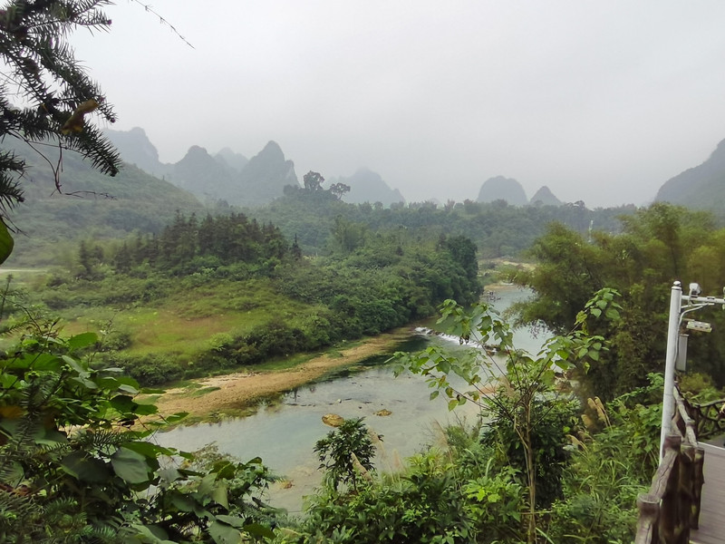 越南一侧,眼前这道不宽的孤单水流就是越南境内的板约瀑布