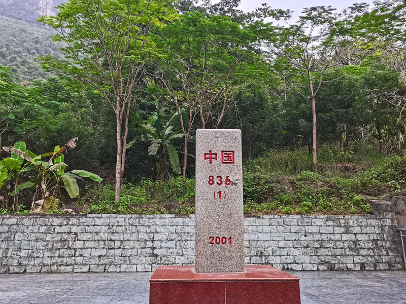 游罢竹筏,弃舟上岸,步行继续观览。走不远即可见中方836界碑,这也是游客追捧的一景,总有人在那拍照,抓拍一张无人的很不易。