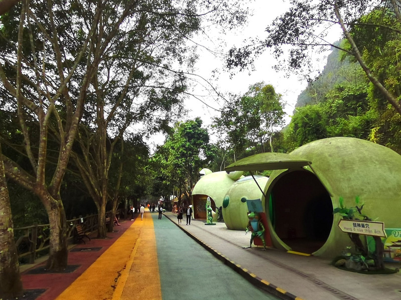 这里沿河而建,地势较高,极其适合观景。难怪多数人都不坐电瓶车,而是步行往外走,为的就是沿途观景。我们若是坐电瓶车一路过去,岂不是亏大发了,得留下多大遗憾啊!幸亏及时止损!(😀)