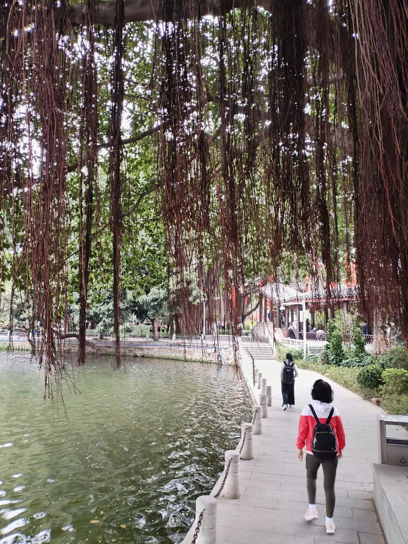 越秀公园里的五羊石雕。 中山堂正在整修。 黄花岗七十二烈士墓。 流花湖公园里的白宫 流花湖公园里的红桥葵堤。 2024年2月,阿李有幸和两位朋友来到广州,享受了二十多天花城的阳光,看到了很多美景,遇到了很多好人。 在这段悠闲的时光里,阿李漫游了广州的香雪公园、黄埔公园、黄埔军校旧址、越秀公园、创新公园、创业公园、黄花岗公园、海珠湖公园、荔湾湖公园、珠江公园、文化公园、洲头咀公园、东山湖公园、云台公园、流花湖公园、海心沙亚运公园、宏城公园、麓湖公园、天河公园、长湴公园、华农、动物园、植物园、中山堂、南越王博物院、沙面岛、二沙岛、陈家祠、圣心大教堂等地。这些景点中,云台公园、动物园、植物园、中山堂、南越王博物院需要买门票,其它的都是免费。不管是免费的还是收费的,每个景点都有自己的特色,都有美景可赏,都值得我们一游。三角梅、紫荆花、木棉花、炮仗花、杜鹃花、月季花、牵牛花、兰花、樱花、桃花等等盛开在各处,让阿李目不暇接——广州的花城之名不是妄得的。 荔湾湖公园游人众多。 流花湖公园里的紫荆花很漂亮。 炮仗花开得轰轰烈烈。 创业公园里的樱花绽放。 海珠湖公园鲜花满园,可以看到广州塔。 云台花园 天河公园里的三角梅 云台花园里的郁金香 植物园里的牵牛花 在所看到的美景中,最让阿李难忘的是广州塔、木棉花和榕树。 巍然挺立在珠江南岸的广州塔,昵称小蛮腰,高六百米,远超周围建筑,可谓鹤立鸡群。在海心桥上看它要仰视,在花城广场看它要仰视,在东山湖上看它还是要仰视,只有在海珠湖公园和麓湖公园的鸿鹄楼上看它不用仰视。 从海珠湖看广州塔 Play Video 木棉树在广州街头和公园都随处可见。我们刚去的时候它才开始长出花苞,没过多久,我们就看到大朵大朵鲜红的花朵在高大的木棉树上相继开放,最后整棵木棉树变成一片红霞,成为广州街头靓丽的风景。 Play Video 榕树在当地人眼中是最普通不过的树,到处都是,阿李却因为它到处都是而感叹它顽强的生命力:无论它身在何处,都是使出全身气力拼命生长,不仅是往上长,它还往四周长——它的干和枝上长出很多根须,根须往下生长,一旦接触到地面,就越长越粗,变成树干,长出新的枝叶,一棵榕树最终会变成一片榕树。阿李在珠江两岸绿道骑行时,尽管烈日高悬,但丝毫感觉不到它的威力,因为行道树大多是榕树——它们用繁茂的枝叶挡住了阳光,用宽广的臂膀环拥着整个道路,让绿道成为了真正的绿色的道路,让路人变成它怀抱中的孩子!在这样绿色道路上骑行,怎能不使人心旷神怡、神清气爽呢?阿李现在好想再去榕树下的绿道骑行,再去享受一下榕树的拥抱! 黄埔公园里的榕树。 黄埔军校旧址里的榕树。 荔湾湖公园里的榕树,树干上上长满了根须。 珠江北岸的绿道,行道树基本上是榕树。 珠江南岸的绿道,榕树遮住了烈日。 流花湖公园榕树下的歌德塑像 荔湾湖公园,游人走在榕树的根须下。 漫游广州的日子里,让阿李感动的是我们遇到了很多好人。 世人多说这个世界坏人太多,要时时提防,但我们在广州呆了二十几天,游玩了很多地方,并没有碰到一个坏人,反而是遇到了很多好人。当我们在街头问路时,当我们在景点请人给我们拍照时,总是能得到热情而友好的回答,让我们心里暖暖的,感慨世上还是好人多啊!比如年三十晚上,我们乘地铁去黄埔公园看花市,结果一出地铁站,天已经黑了,让人分不清东南西北。跟着导航走了一阵,根本看不到花市的影子。担心方向搞反了,我们就向一个小姑娘问路。小姑娘给我们指了路后,又怕我们走错,说她家就在公园附近,她正要回家,我们只要跟着她走就行了。就这样,我们跟着她在居民楼中穿行,很快就到了公园门口。逛完后,我们又在几位路人的先后指点下,很快到达了地铁站。 当然,最让阿李感动的,是阿李几位定居在广州的同学的真挚情谊。上一次阿李和他们聚会还是在2019年元旦,之后同他们一别五年多。这一次阿李来到广州,再次见到他们,大家还是那么热情,还是那样友善,还是那样无拘无束,还是那样无话不谈,好像我们从来没有被时间和空间隔开过,恰似《老同学》这首歌所唱的:无论相隔多遥远,仿佛你从未走远;无论分别多少年,好像你一直在身边。 2024年的2月,漫游广州二十余日,遇见众多美好的景色和人事,阿李至今还念念不忘呢。 期待能够再次和朋友们漫游广州! 2024、5、5 在流花湖公园眺望白宫。