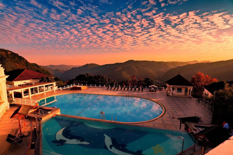 度假村的户外露天温泉浴场更让客人们直接投入大自然的怀抱,尽情享受大自然的无私馈赠。大小汤池可以随意选择,温度不同,功能也不相同,游客可以根据自己心愿选择最适合自己的汤池尽兴享用。我选择了菊花汤池和红酒汤池,最好玩的是鱼疗池,小鱼们围着脚咬得痒痒的,快乐极了。