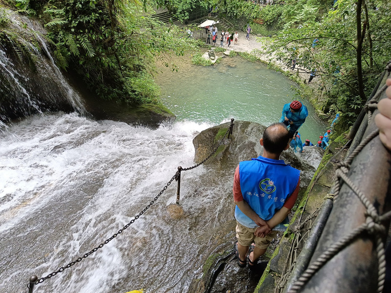 瀑布一层又一层,有山路(旱路),也有水路(攀爬瀑布,比较凉爽吧)