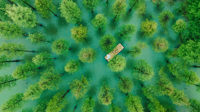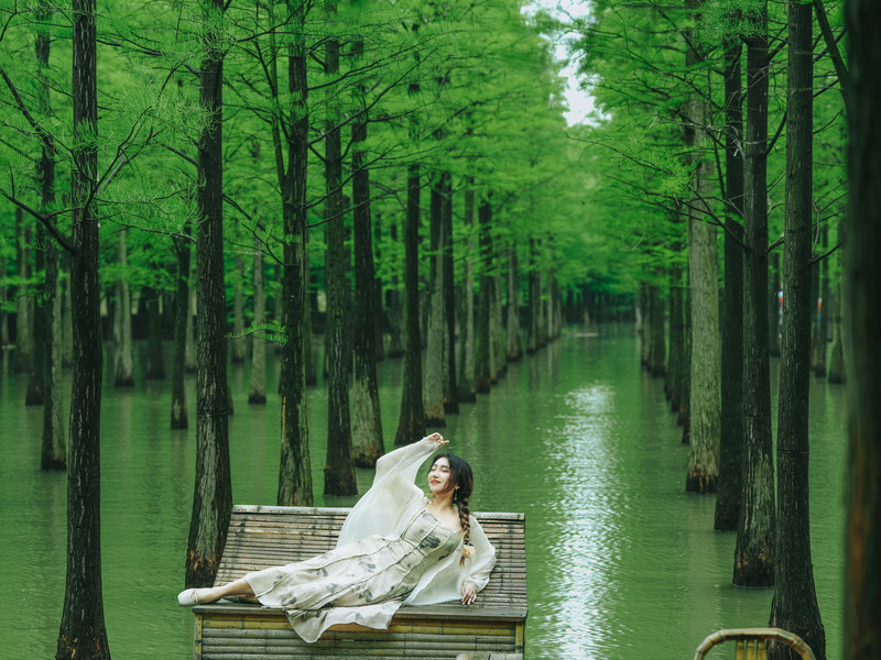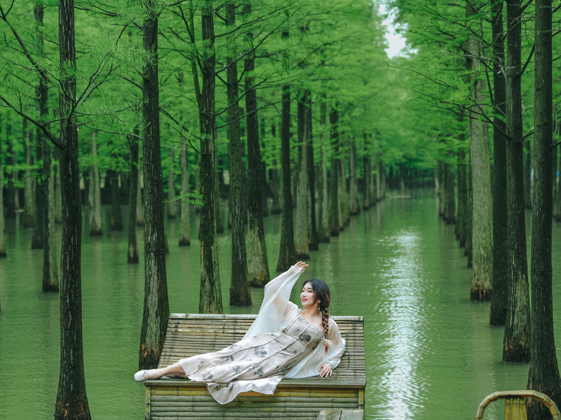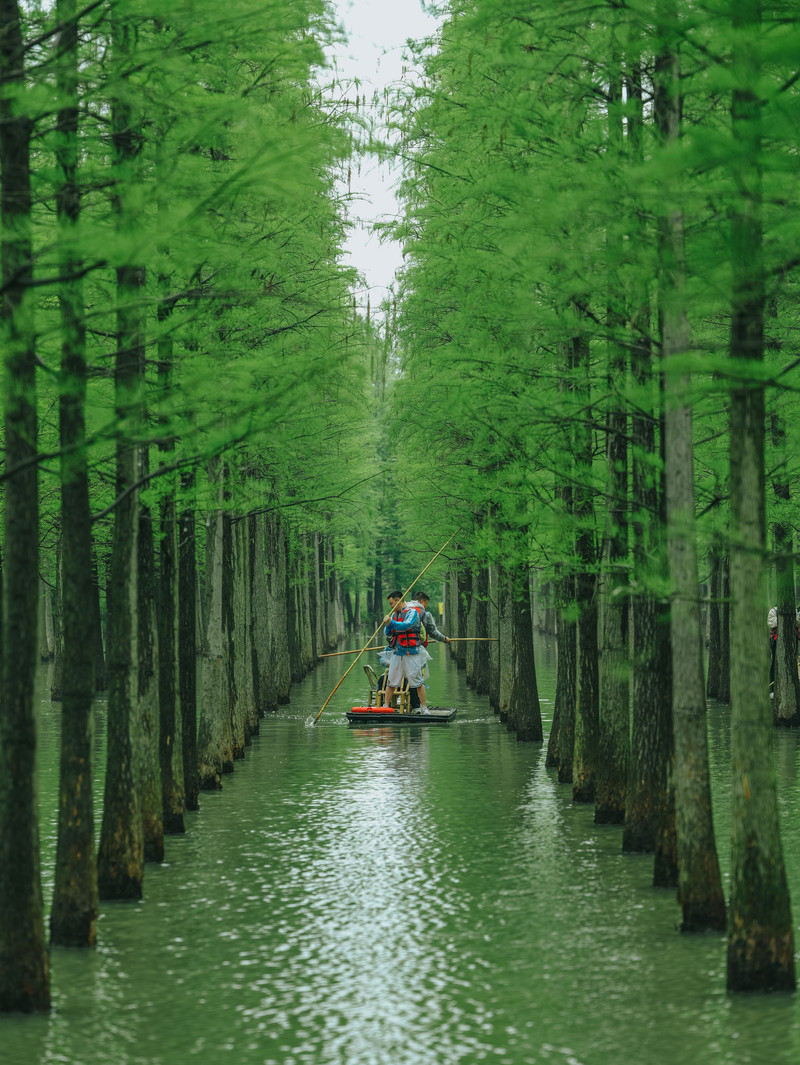 刚到洪泽湖湿地就下了雨,忽大忽小最后停了下来。被惊艳的是水杉森林,树上幽绿的被风吹飞了叶子,水面是游人泛竹筏穿过林子,虽然用尽了力,还会被风回来一点。