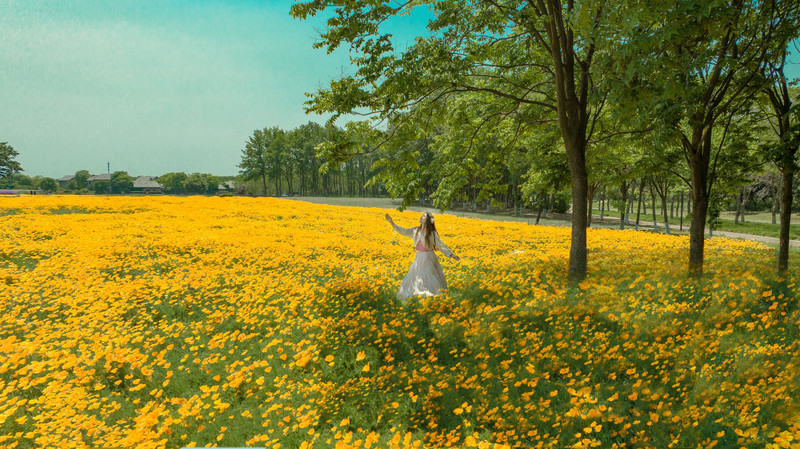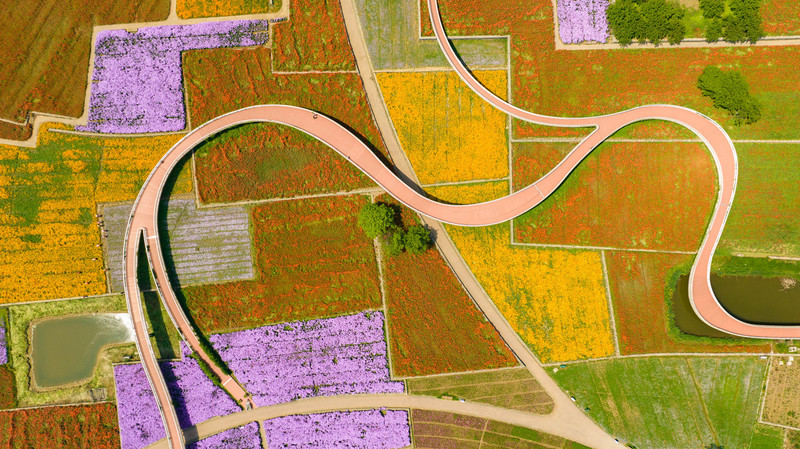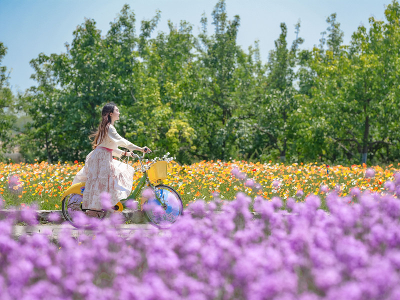 四季花开不断,色彩斑斓,是游玩拍照打卡的好地方,花海与绿色交相辉映,宛如仙境。