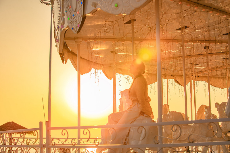 这里湖水清澈,沙滩柔软,仿佛进入了一个海滨度假胜地。很多人会冲着骆马湖沙滩公园的日落而来,旋转木马、凉亭、躺椅、棕榈科植物……从黄色到橙红,直接有种身处热带风情十足的海南度假的梦幻感。