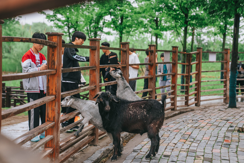 沿途还可以看到各种水生植物和萌宠乐园的动物,偶遇到一群来研学的孩子,也被小羊和鸵鸟萌化了心。