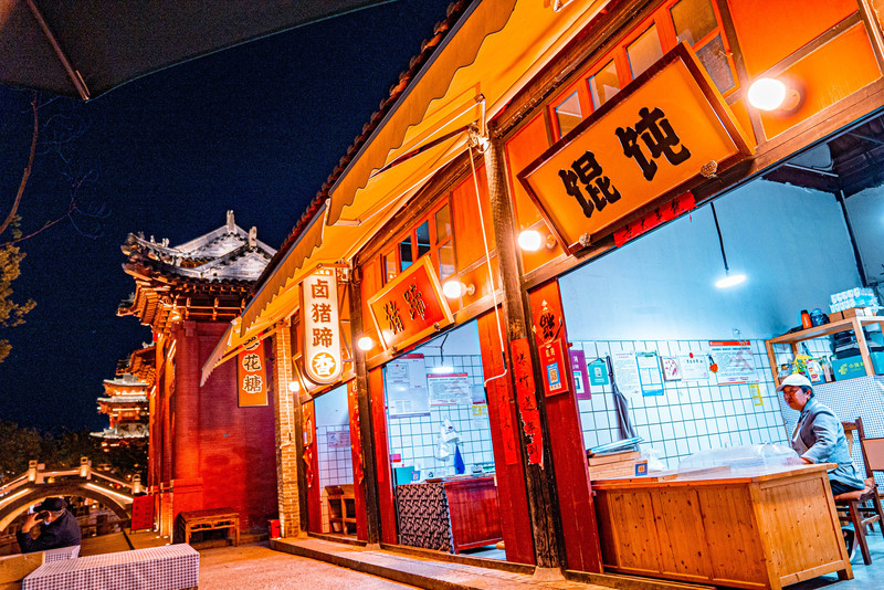 日落后我才匆匆赶到袁家村,没看见人山人海,只看到有二三人蒸了一炉饼。