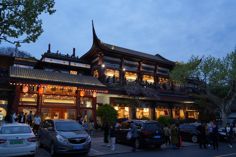 华灯初上之时,恰过“楼外楼”。虽近年多受诟病,其门前仍车水马龙,宾朋满座。