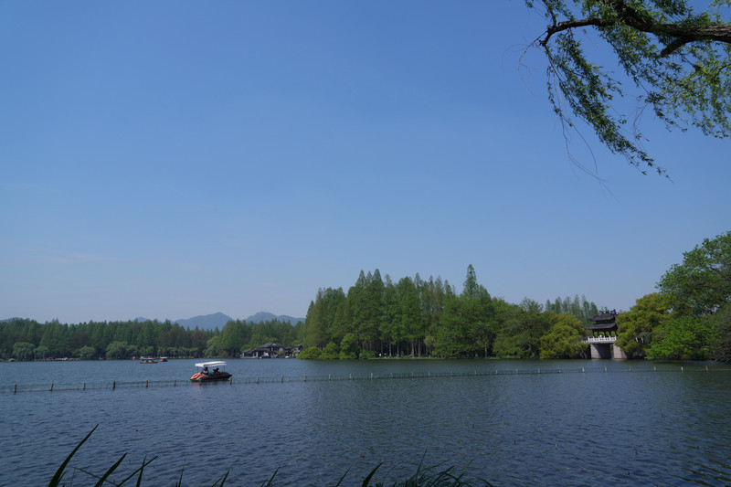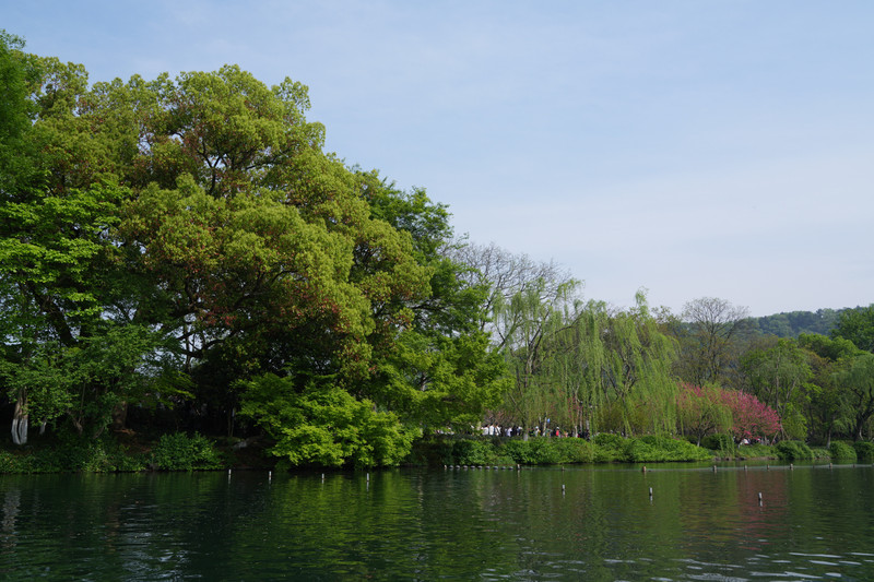 白堤之上,细柳扶风,惜无法用相机,照录这春意盎然的柳绿花红。