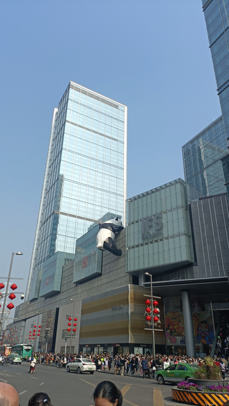 - 在IFS国金中心顶楼打卡了“大熊猫”标志,随后前往文殊院祈福。