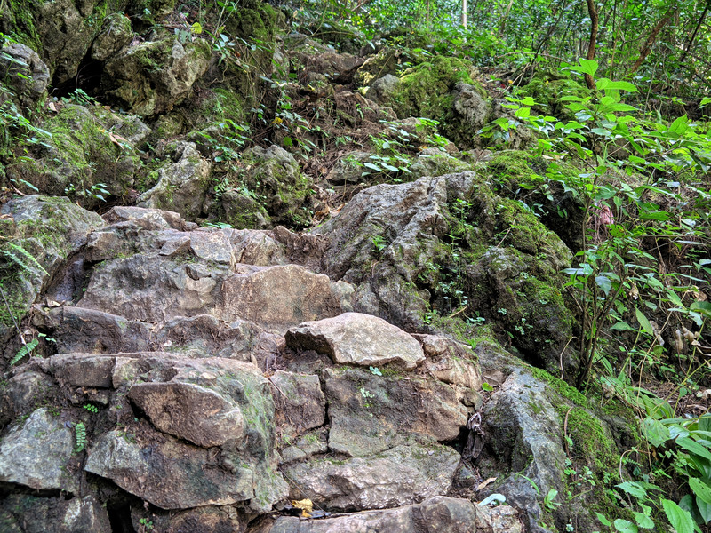 上山的台阶大部分都是不规则石头,有些还挺陡的,爬起来比较费劲。沿途会见到十几个坟墓,但正好路边的不多,没有网上说的那么可怕,对于我们这些有山野扫墓经历的人来说,完全没有难度,晚上就不敢说。