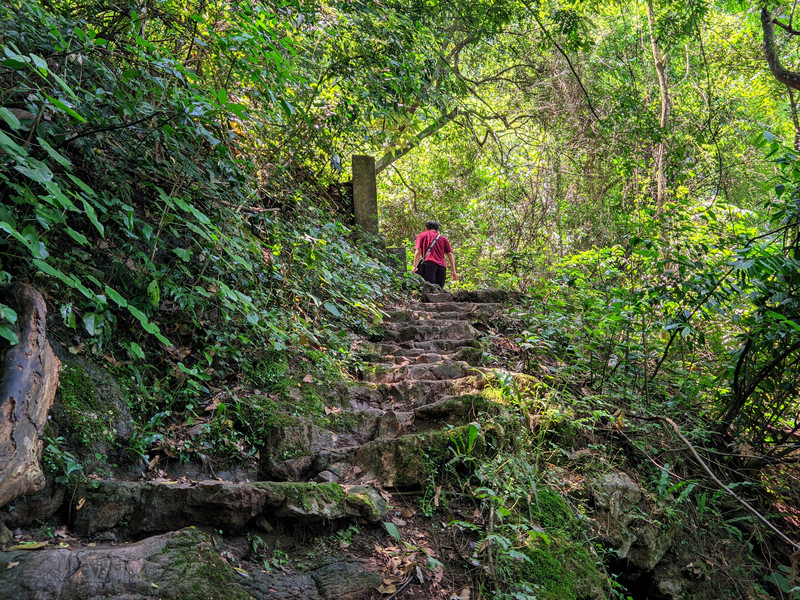 我登山的时间是下午13:30,阳光比较猛烈,但是登山的路遮阴比较好,除了最后亭子往上那一小段,基本晒不到。