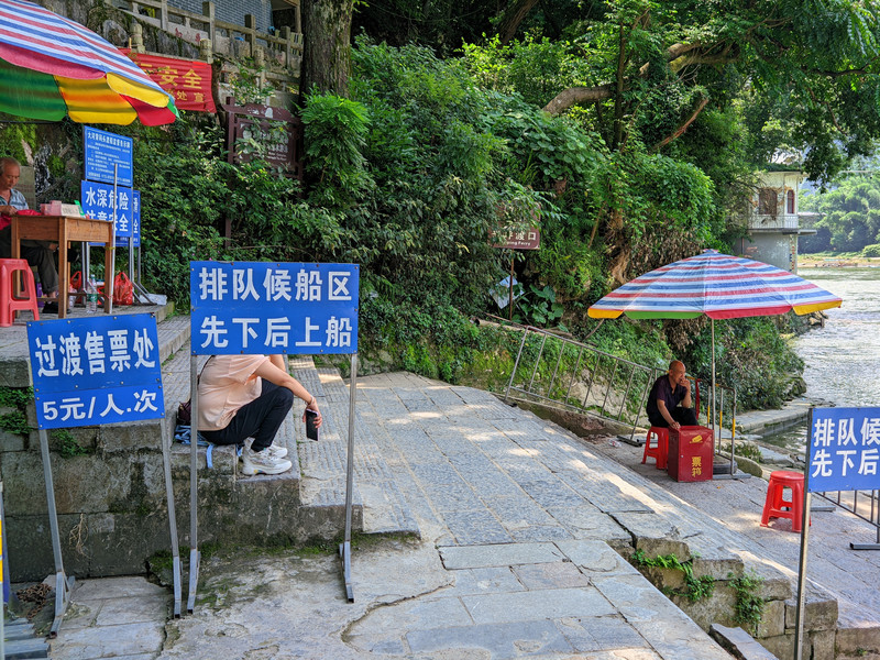 先步行导航到游船码头旁边的美宜佳超市,超市对面的路走进去,不到100米就到达轮渡码头,5元可坐轮渡到漓江对面。5元就可以坐船过漓江,是不是很便宜?而且过江后可以坐车去相公山,这是一个看日出的地方,但是要收费。