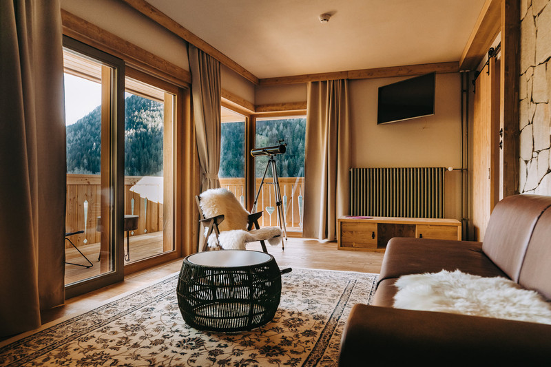 宾馆大量采用天然木材和石材建造,客房宽敞舒适,一楼设有6间双人房、餐厅、酒吧以及滑雪板/山地车仓库,二楼设有4间家庭房,所有客房均有阳台,可远眺周边山峰和耶洛维察(Jelovica)森林的美景。