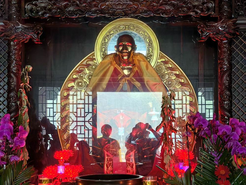 九华山作为地藏菩萨道场,肉身菩萨不断出现(可查的有14尊),成为九华山佛教的一大特色,同时也为这座佛教名山披上了一层神秘的面沙。图为九华山肉身菩萨之一。