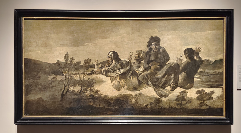《命运三女神》戈雅在 1819 年至 1823 年间创作的黑色画作之一。当时 75 岁的戈雅身心俱疲,他直接在 1819 年购买的(“聋人之家”)的内墙上创作了这一系列画作。这幅画是对命运女神神话主题的重新诠释,即荷马、赫西奥德、维吉尔和其他古典作家笔下的命运女神。