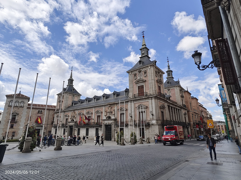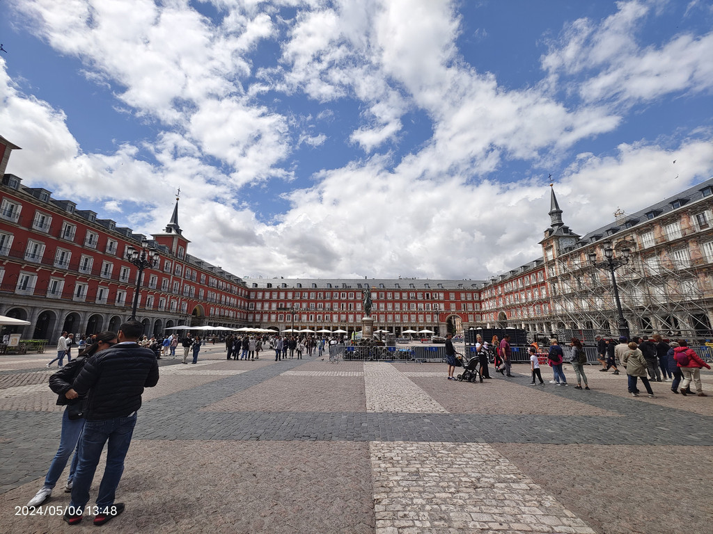 马约尔广场其形状为长方形,建于 1690 年,1790年大火之后重建,位于马德里市中心,长129米,宽94米,周围环绕着三层住宅楼,有237个面临广场的阳台,它共有9个入口。主广场的控制性建筑是面包房之家,行使市政和文化功能,外墙布满了壁画。它也曾是斗牛,市场,足球,公开处决的场所。广场中心有腓力三世的骑马雕像 ,广场的一侧正在搭着舞台。马德里的主保圣人圣伊西德罗的庆典,即将在这里举行。