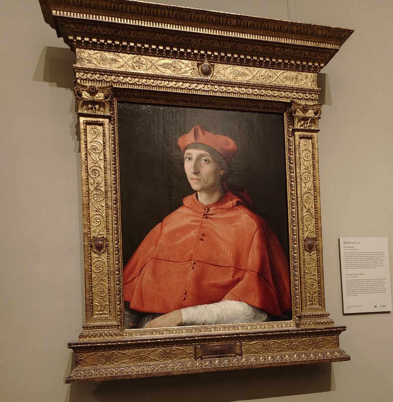 《红衣主教》是拉斐尔创作于1510 年的木板油画,镇馆之宝。