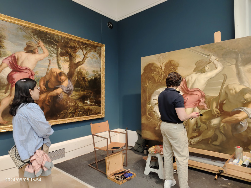 这幅画是在罗马创作的,拉斐尔精通现实主义绘画艺术,用他的同行的话说,他有能力“把人画得比他们实际的更真实”。