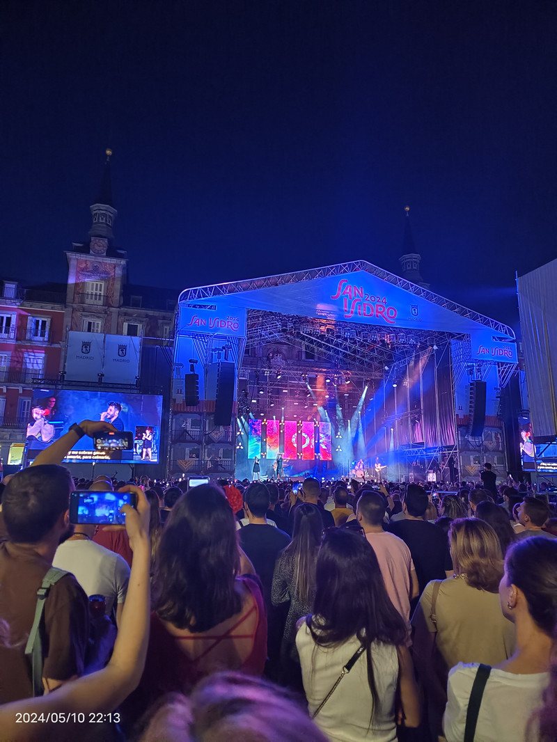 时隔两天我们又逛到了广场,广场舞台上西班牙歌星纵情歌唱,整个广场挤满了人,全城各处庆祝圣伊西德罗节即将来临,《SAN ISIDRO》马德里最重要的地方宗教庆典—圣伊西德罗节。