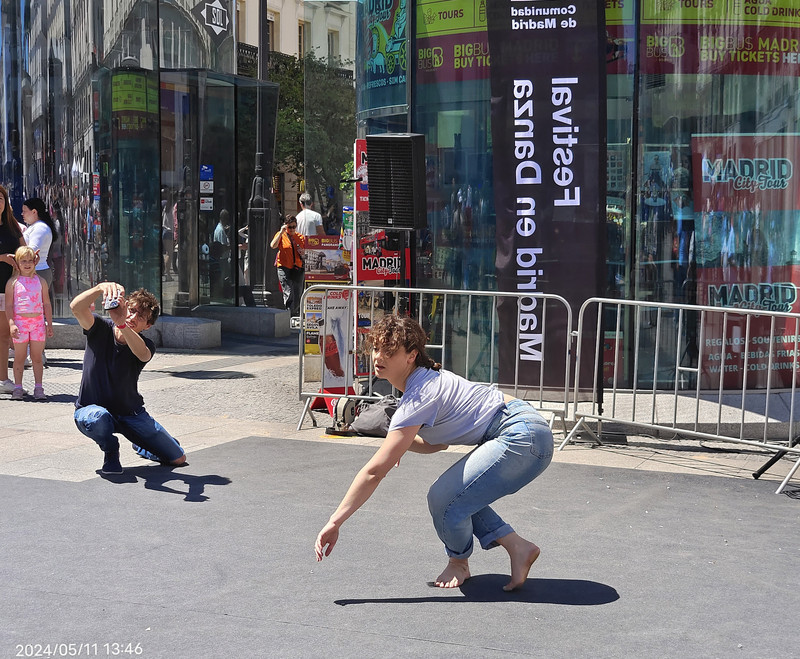 从索菲亚王后国家艺术中心博物馆出来,我们去吃晚饭。忽然传来了音乐声,不一会儿看到男男女女穿着各种不同的西班牙民族服装,排成一队,伴着悠扬的民族音乐,踏着优美的舞步缓慢走过来。舞者的脚下类似我们的踩高跷,但不同的是他们舞步时而伴随音乐节奏快速旋转,非常有意思。