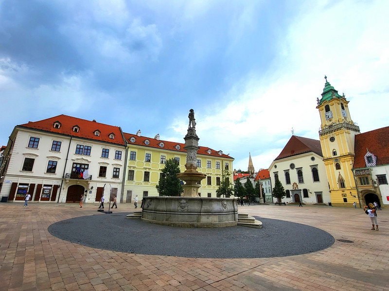 斯洛伐克并不是这次东欧的重点,仅是过路首都布拉迪斯拉发让大家看一看而已,停留的时间很短可能还不足2个小时吧,游览的地方有布拉迪斯拉发城堡(远观)、斯洛伐克国家剧院(外观)、赫维兹多斯拉夫广场、旧市政厅(外观)、圣马丁主教堂(外观)等。用领队概况的话讲,布拉迪斯拉发是个“小而古、平而精、静而幽”的城市。