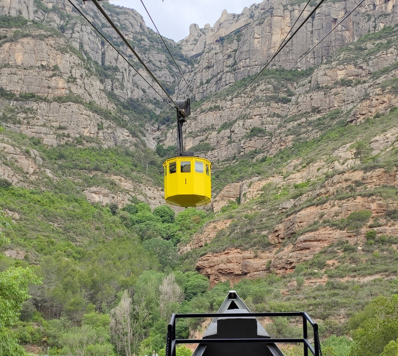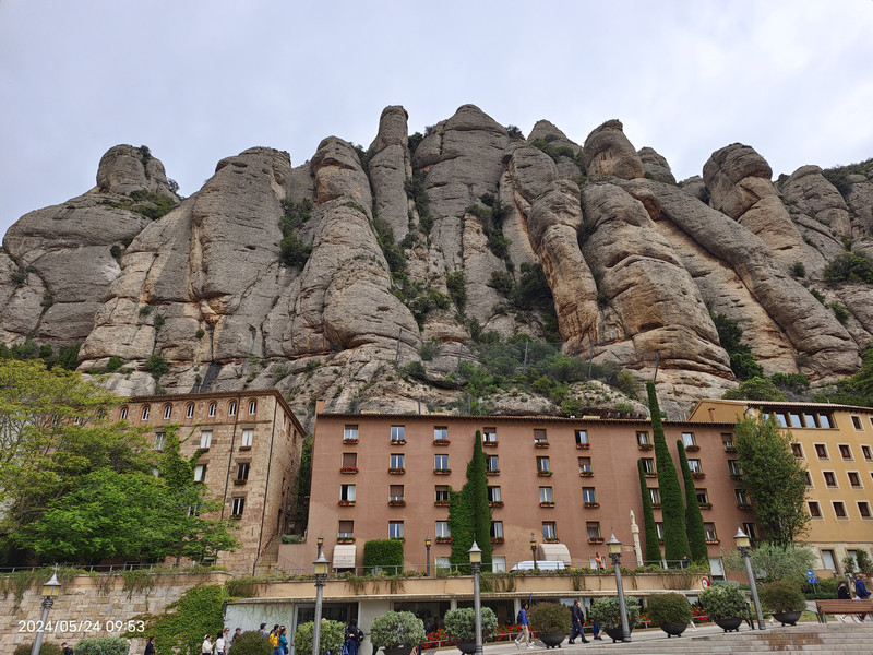 参观完教堂乘锯齿车上蒙塞拉特山,蒙塞拉特山海拔高度1236米,有砾岩组成,群山连绵不断,山体陡峭,因锯齿狀的外观而得名。