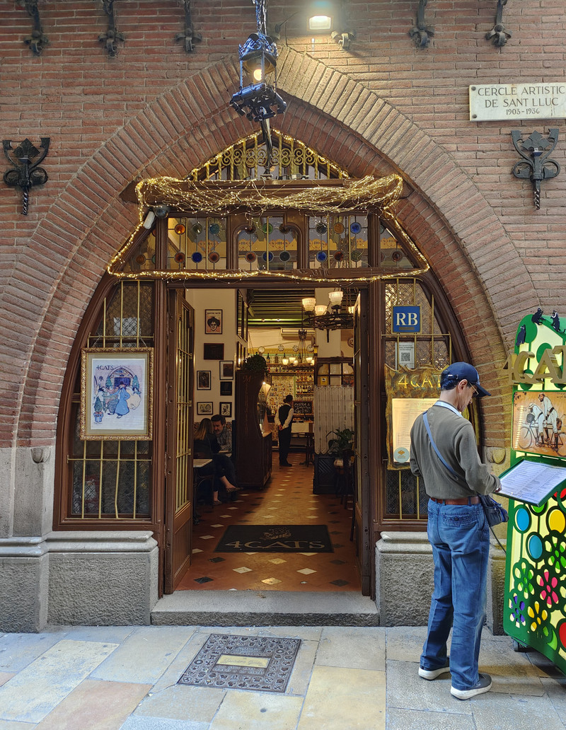 四只猫咖啡馆于1897年开业,曾经是巴塞罗那艺术家的聚集地点,毕加索早期曾频繁光顾这里,他的第一次个人作品展就是在四只猫举办的。咖啡馆的封面是毕加索曾经为这里绘制的一张海报。