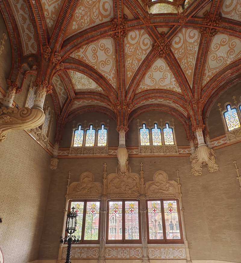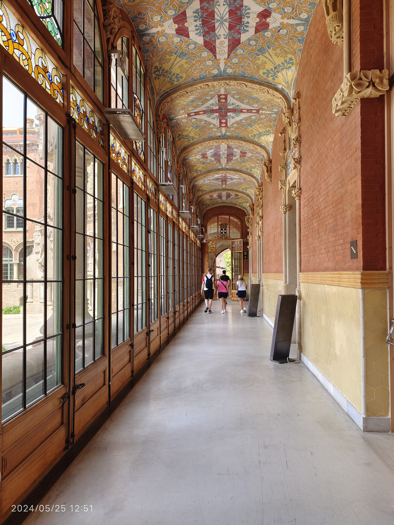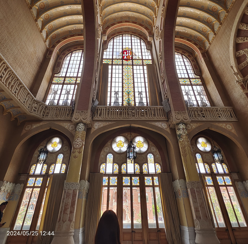 蒙塔内尔希望把医院变成一个充满生机和美感的空间,他在每栋楼里都精心安排了许多装饰细节, 比如色彩绚丽的玻璃, 马赛克瓷砖拼图,几乎所有装饰材料都是与当时最棒的手工艺人合作。圣十字圣保罗医院的建筑那么多,那么美,超乎我们的想象,很可惜预定了下午1点参观圣家堂,内部展厅没有时间好好参观,就草草走了。