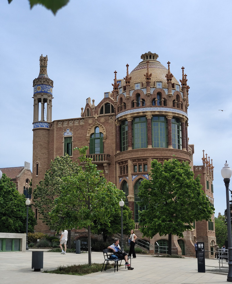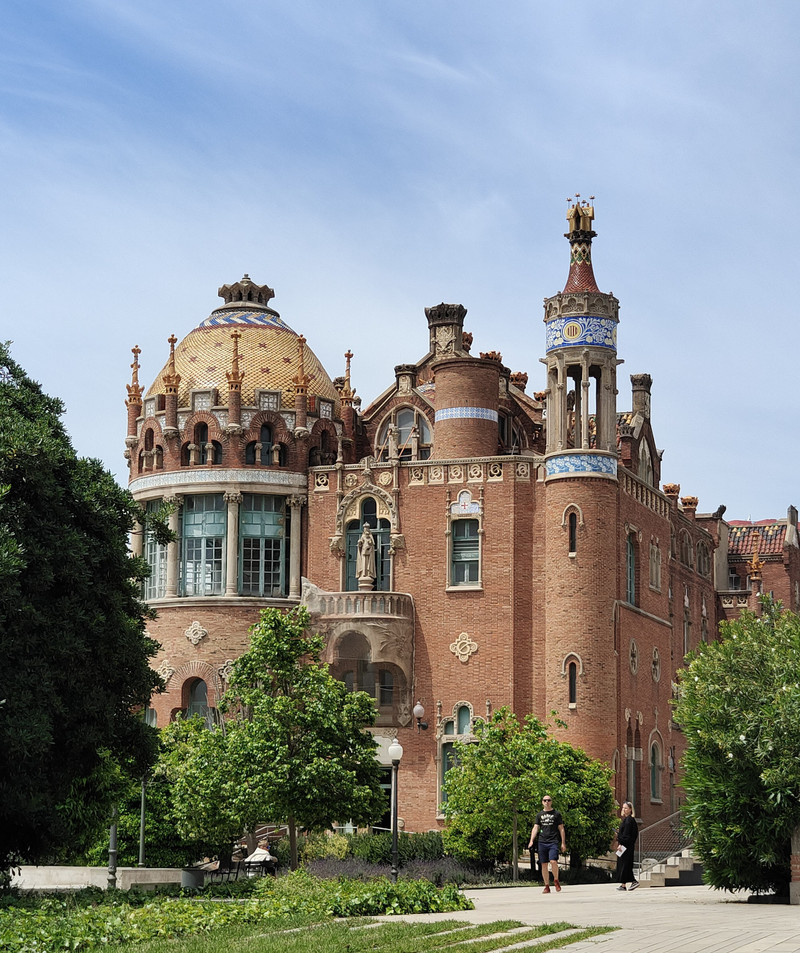 圣十字圣保罗医院是巴塞罗纳的世界遗产之一,由与建筑大师路易·多梅内克·蒙塔内尔设计(同时也是加泰罗尼亚音乐宫的设计者),建于1901-1930年。蒙塔内尔根据医院的特点,让每栋楼都有不同的功能分区,不仅楼与楼之间设计了地下通道相连接,便于人员流动。还规划了纵横交叉的主干道,地上道路与地下 通道 相结合,做到有效分流,提高医院效率。这种在当时非常前卫的规划理念,直到现在建造大型医院时都还在沿用。这座规模宏大的医院,自1930年正式投入使用以来,一直用到了本世纪初,是世界上规模最大的现代主义建筑群, 加泰罗尼亚公共事业建筑的典范。