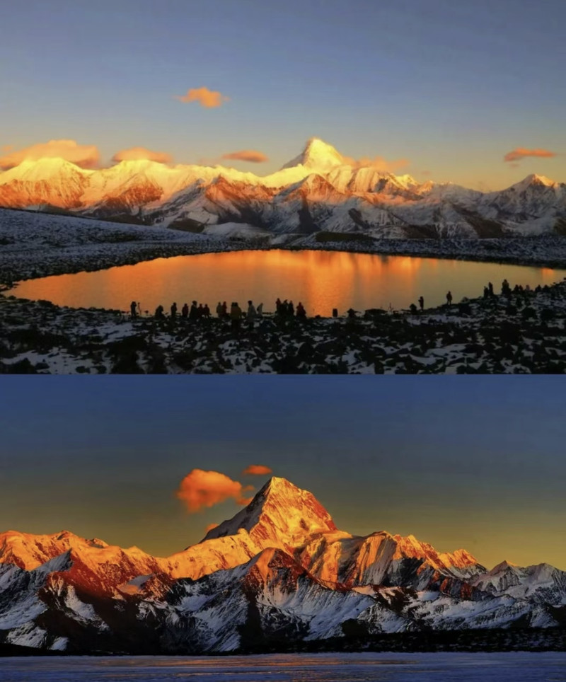 清晨,当第一缕阳光洒在雪峰上,金光闪闪,