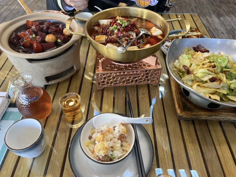 丽江的美食同样值得一试。浮娴小锅饭以其分量足、味道好而受到游客的喜爱。在这里,你可以品尝到云南特色美食,如普洱茶红烧肉、鱼、手撕包菜和特色小锅饭等。