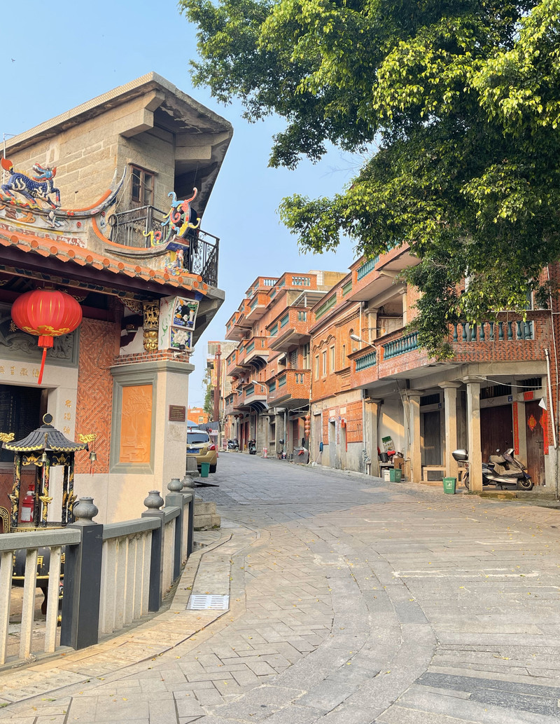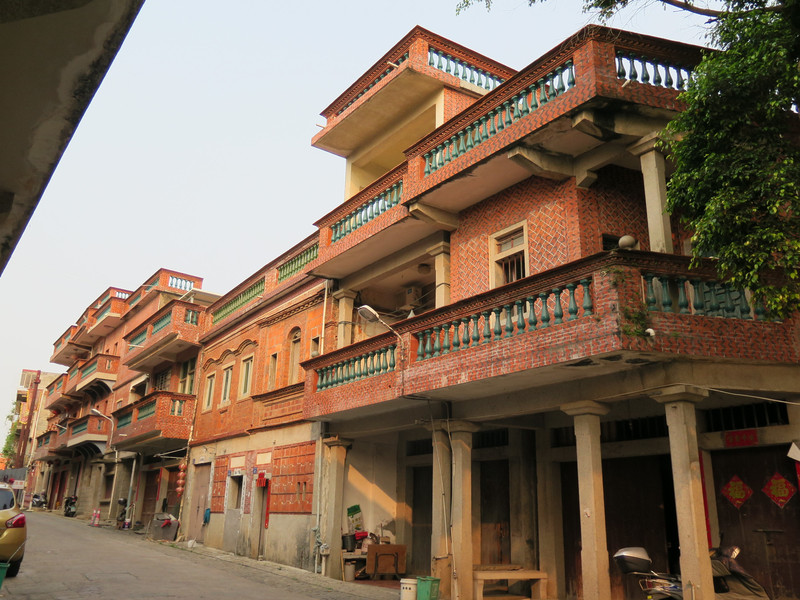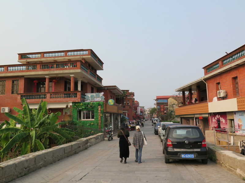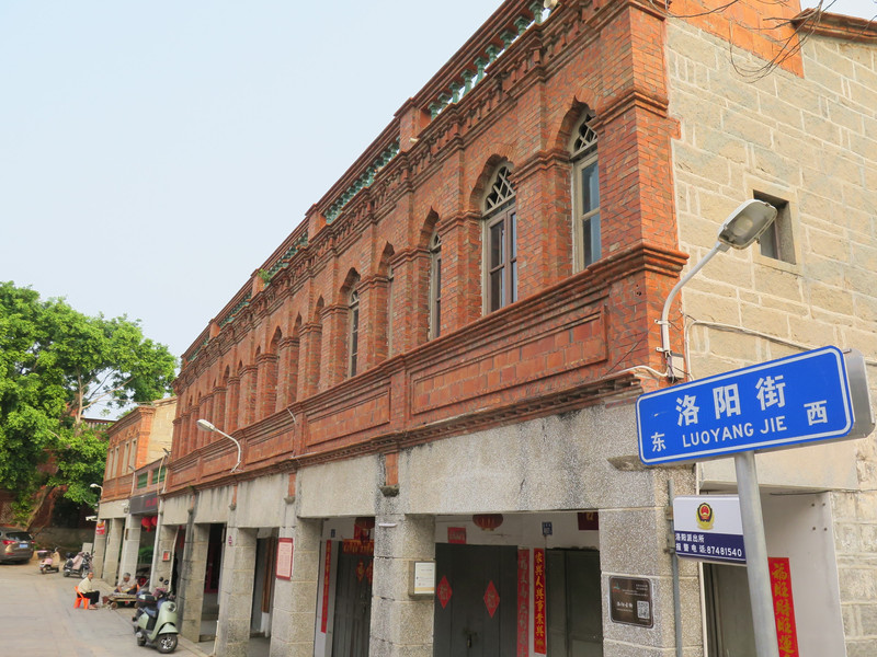 街道两边房屋看着比较新,红砖建筑,闽南风格,夹杂南洋元素。
