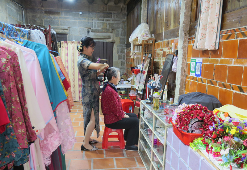 这里也有浔埔簪花围佩戴,此刻没有客人,正好体验一把,也不枉到泉州一游。