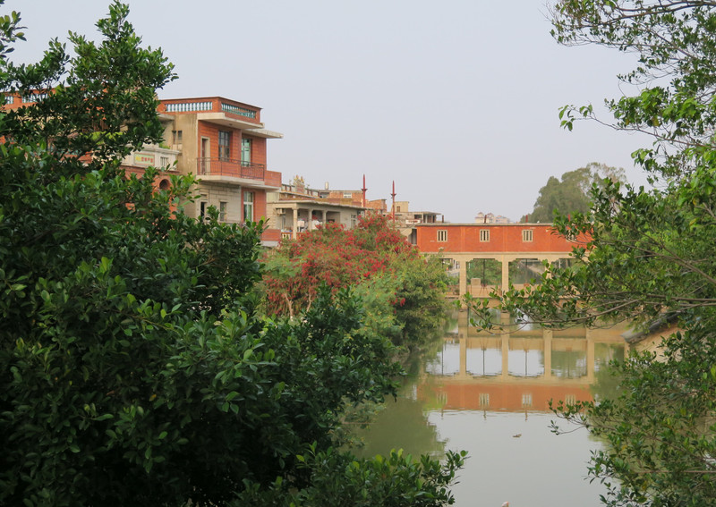 距桥南大约200多米处的桥中间,有房屋、碑亭,石刻,还有几株大树,有文章称为“中洲”。想必当初此地有礁石、沙洲之类,修桥时正好借其所用,可谓拾遗补缺、相得益彰也。