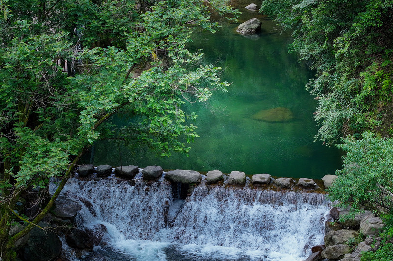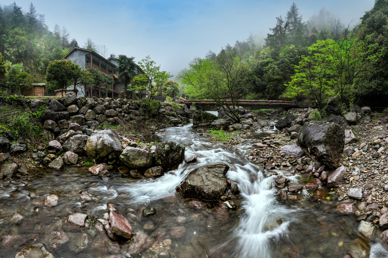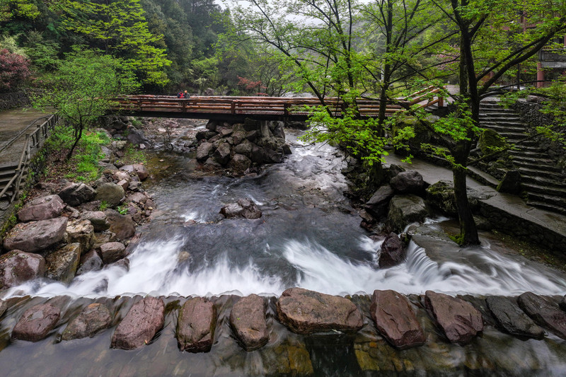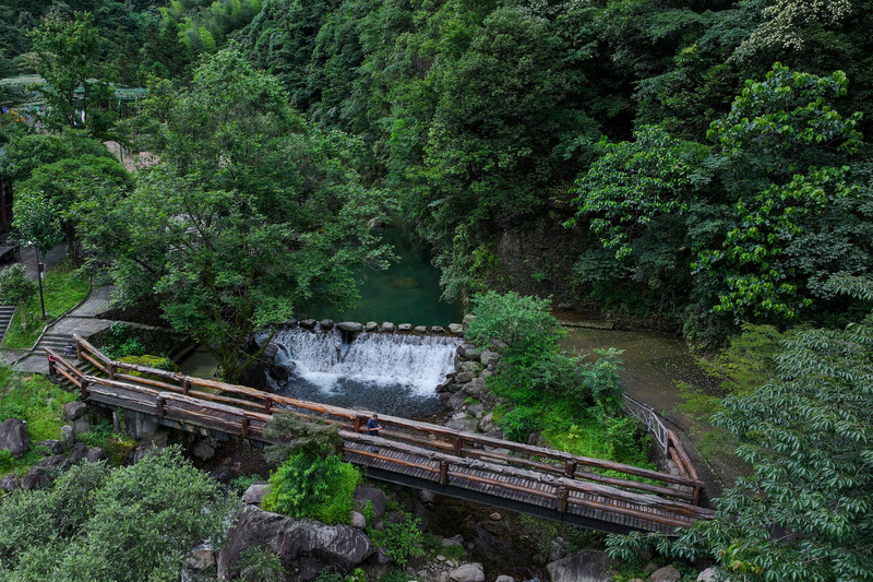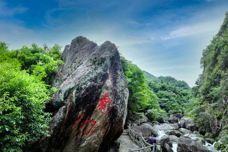 百杖潭景区,位于浙江省金华市磐安县的南部,具体位置在冷沙线仁川镇石下村往南方向,距离磐安县城大约30公里。这个景区以其山势险峻、石头奇特、水质清澈、洞穴幽深、溪流曲折而著称。其中,“秀瀑孕深潭,绝峰育奇石,龙溪十八渡,石上四重天”是对景区景观的生动描绘。夏季,景区内的最高温度大约只有28℃,这里奇石林立,飞瀑众多,山水风光交相辉映,加上树木茂盛、空气清新,成为了金华市民消暑纳凉、亲近水源的绝佳之地。