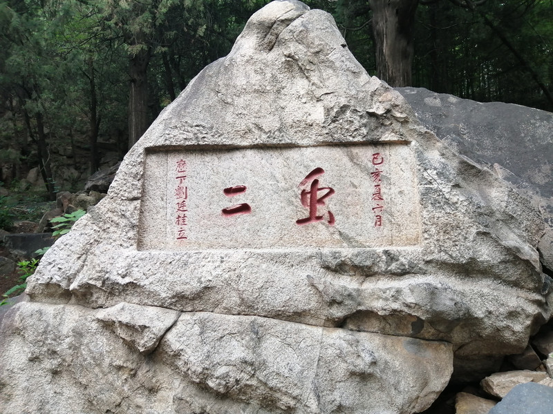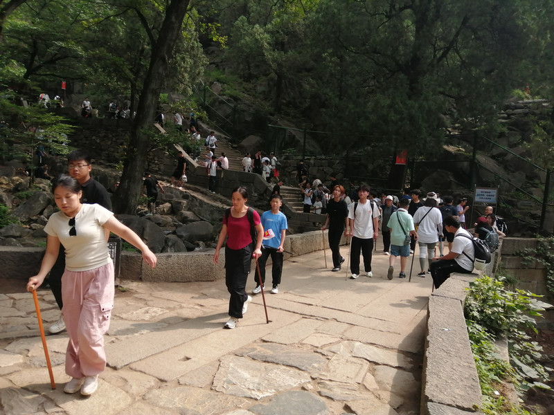 开始下半程了。吃过了午饭,到了半山腰天气也比山下凉快了不少,此时的我和大老爷像似打了鸡血满血复活了。我和儿子都是超级怕热的人,之前的上半程爬的可谓是步履蹒跚,气喘吁吁。一直被老婆赶着往前走。