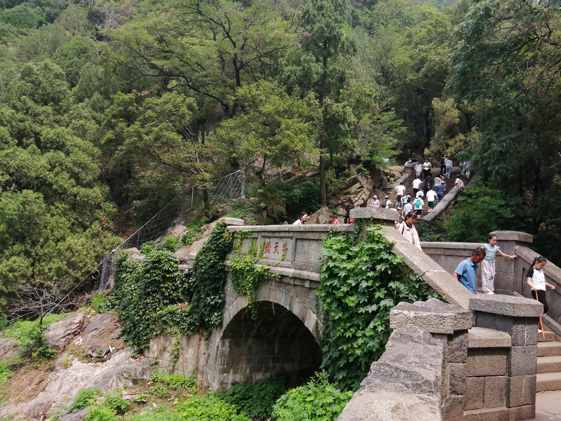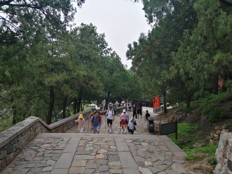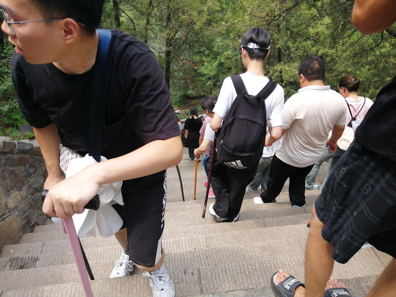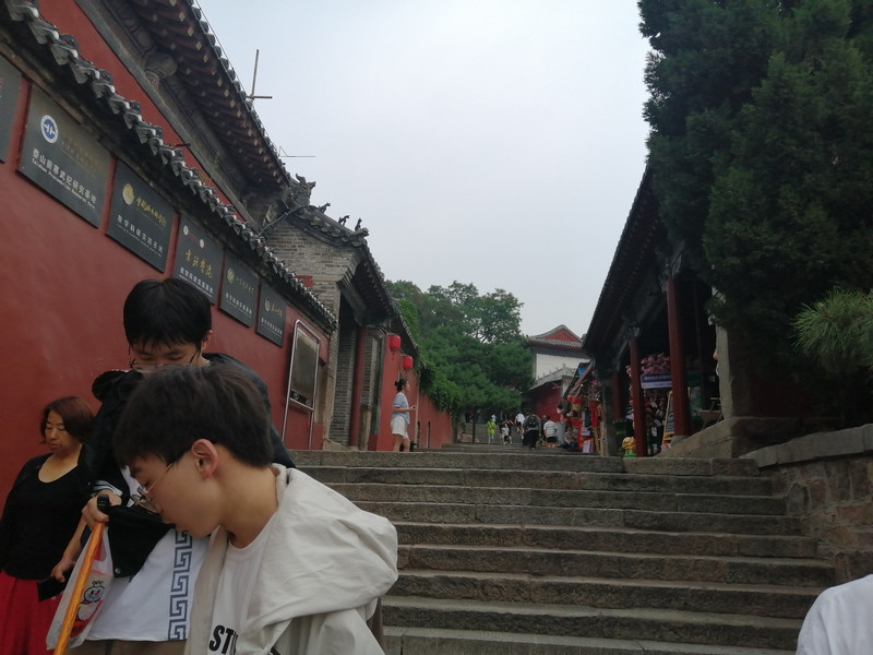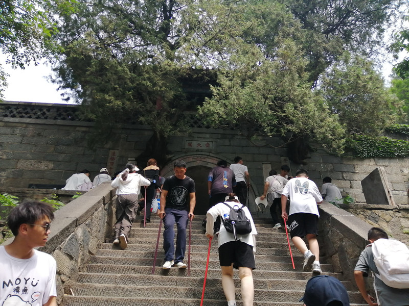 到中天门的上半程道路相对比较平缓。但是三十度左右的天气,对于会出汗的我已经是满头大汗了。旁边两位东北口音的小伙子对我说:大哥这才刚开始,你就热成这样了,后面咋整。我说我也就是会出汗而已,其实我并不热。
