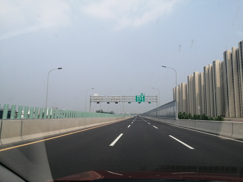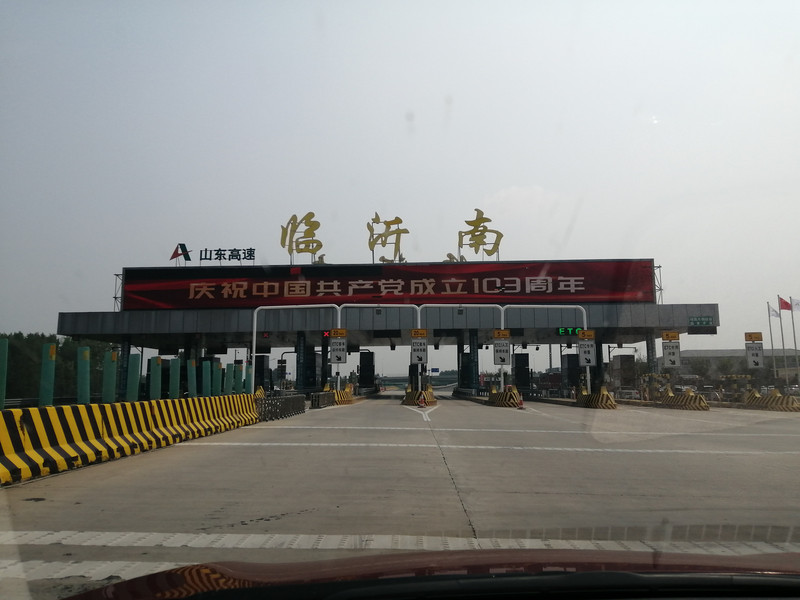电视塔出来。沿着沂河边的祊河路,看着河边美景一直开,过沂龙湾大桥后转入双岭路高架。临沂收费站再进入京沪高速。