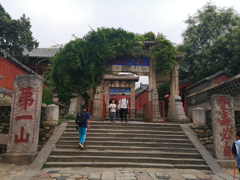 中天门石牌坊旁边是财神殿。泰山上财神殿挺多的,后来到了山顶也看到好几处财神殿。此时是11:15 由于太热,走走歇歇从红门到中天门爬了3个多小时。