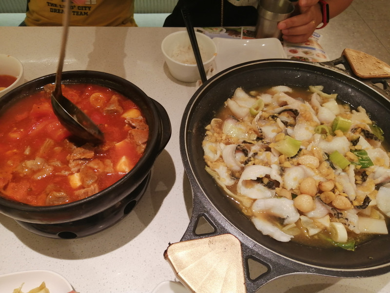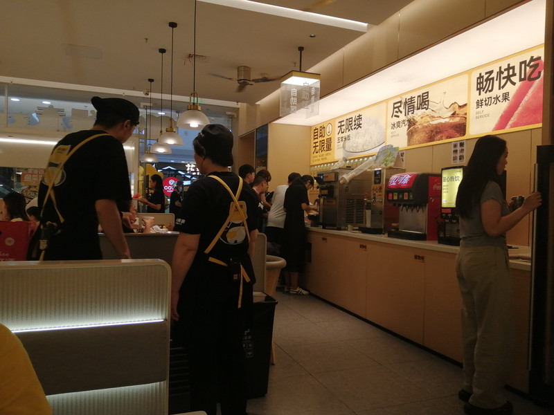 万达广场吃晚饭。山东人就是实在,菜的量比南方大多了,味道也不错。五块钱一人座位费:饮料,冰激凌,水果无限敞开吃。三荤菜,一蔬菜,外加三个人的座位费189 同样的晚饭,在无锡万达广场这一顿晚饭至少要250往上。泰安这里的消费水平还是和二十多年前来时一样,比起江苏苏南地区低多了。米饭不错!是正宗五常大米。大老爷一口气吃了三碗。