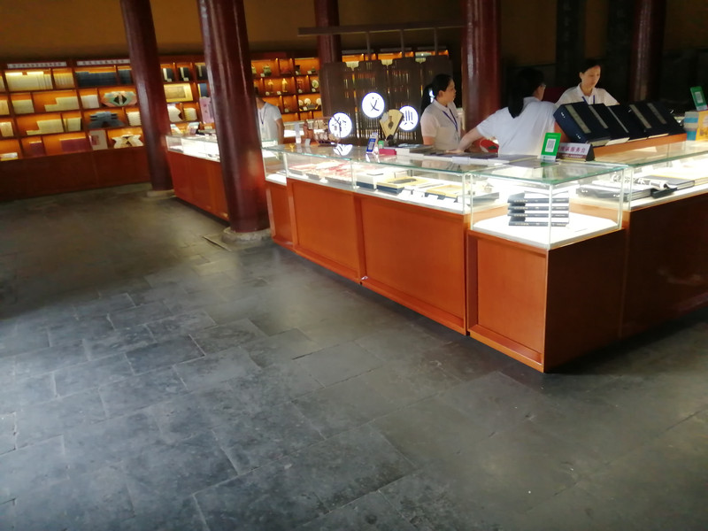 奎文阁里面就是个商店。论语,大学,三字经,文房四宝等等都有的售卖。