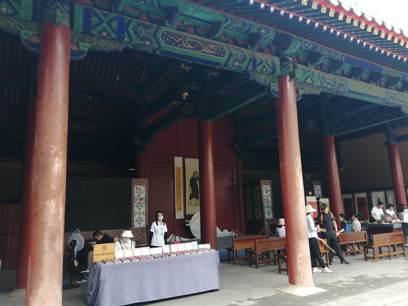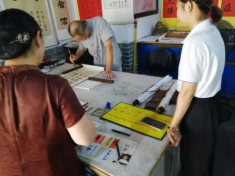 这位老先生是孔氏后人,还是著名书法家。在为游客写字幅。收费按照大小尺寸。