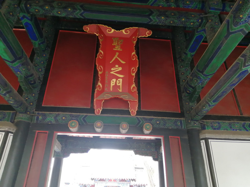 一位大姐过来让我们坐她的电动三轮。她给我们看电三轮是有景区营运证的,我们就上车了。大姐顺着老城区由北到南开,沿途正好看看老城区几个牌坊街。最后回到万仞宫墙这里。付她10块钱车费。感觉挺不错的,价格合理,大姐也热情周到,一直开到万仞宫墙这里。打车的话是开不到万仞宫墙门口的。要是从孔府北门步行回到这里要2.5公里。