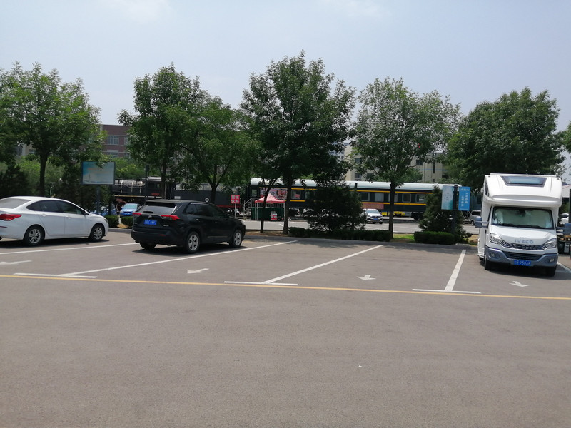 下高速分道口往薛城方向。开了十分钟,右转矿建路后几百米顺着右侧的小坡开上去就到停车场了。停车场很大,而且是免费的。中间停着一列火车头和车厢。里面是卖小吃的。