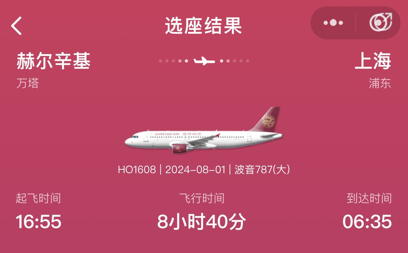 当地时间下午16:55搭乘吉祥航空HO1608航班返回上海。