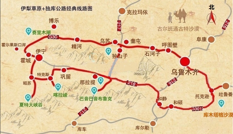 新疆之大,此次旅行主要为伊犁环线,地域之广阔,涵盖了峡谷、草原、湖泊、雪山、森林、峻岭、戈壁、沙漠,涵盖北疆代表性美景。