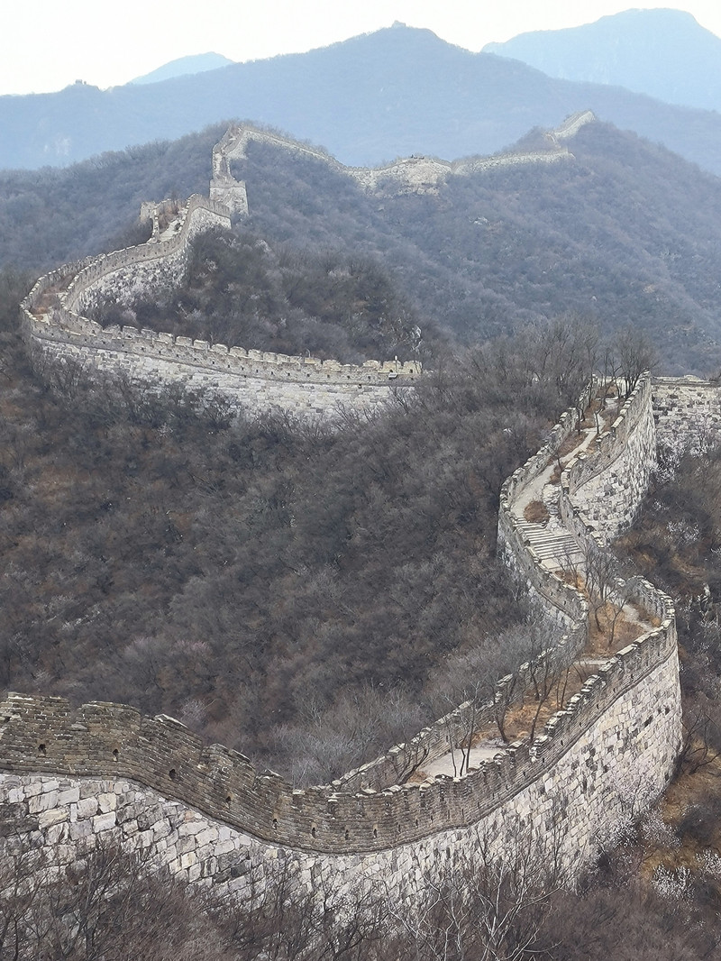 主线东起辽宁丹东的虎山,西至甘肃的嘉峪关,长达8851.8公里,保存相对比较完整,现存墙壕5209段、关堡1272座。从长度论内蒙古居首,占31.5%,北京虽然仅占5.38%,居全国第6位,但却分布最多、最密,而且多为精品,工程最复杂,保存最完好,价值最突出,文化最丰富,著名的有司马台、慕田峪、箭扣、居庸关、八达岭等,我游过的明长城景区多达十几个,包括最东端的虎山和最西端的嘉峪关。